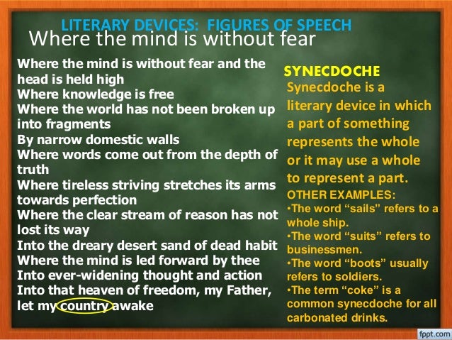 If you dont see any interesting for you use our search form on bottom. Head held high is figurative. Following poetic devices have been used in the poem Where the Mind is Without Fear.