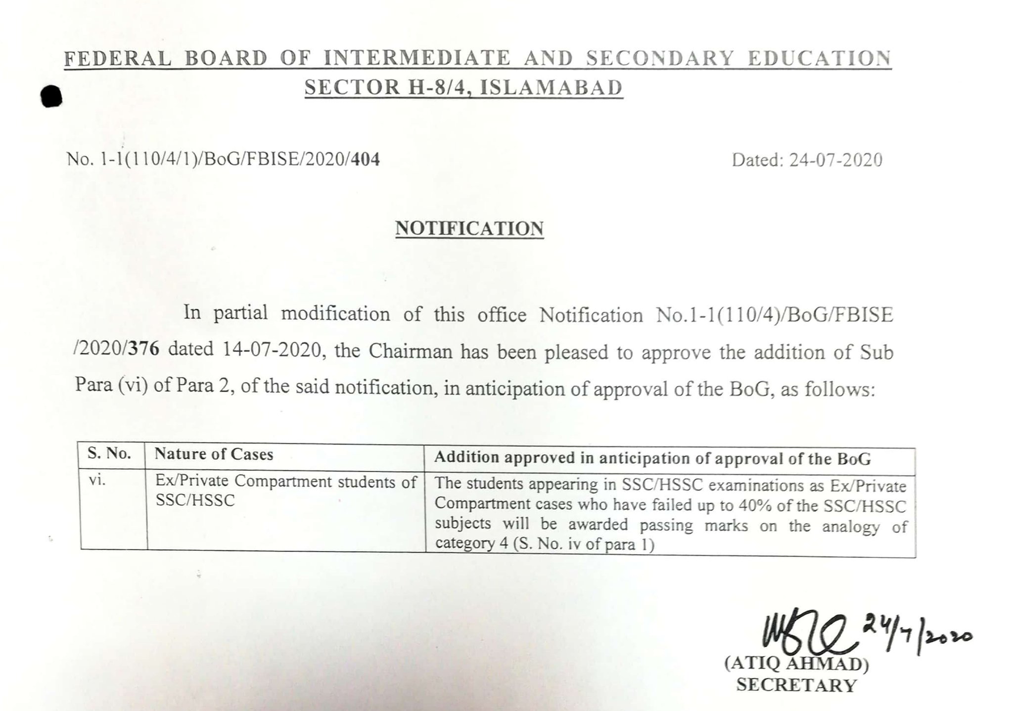 Fbise Official On Twitter It Is Hereby Notified For The General Information Of All Concerned That The Higher Secondary School Certificate Part I Ii Special Annual Examination 2020 Of The Fbise Islamabad